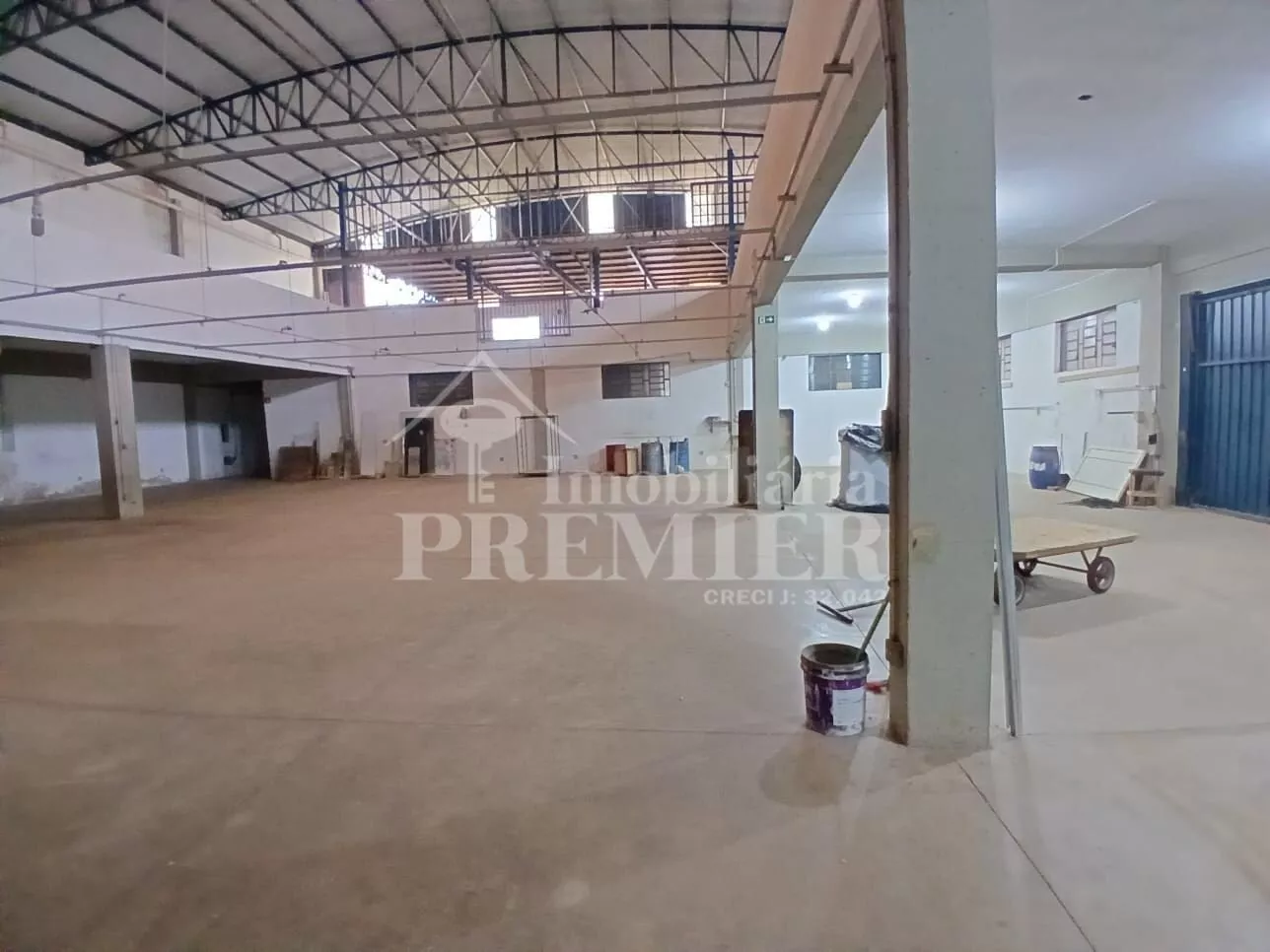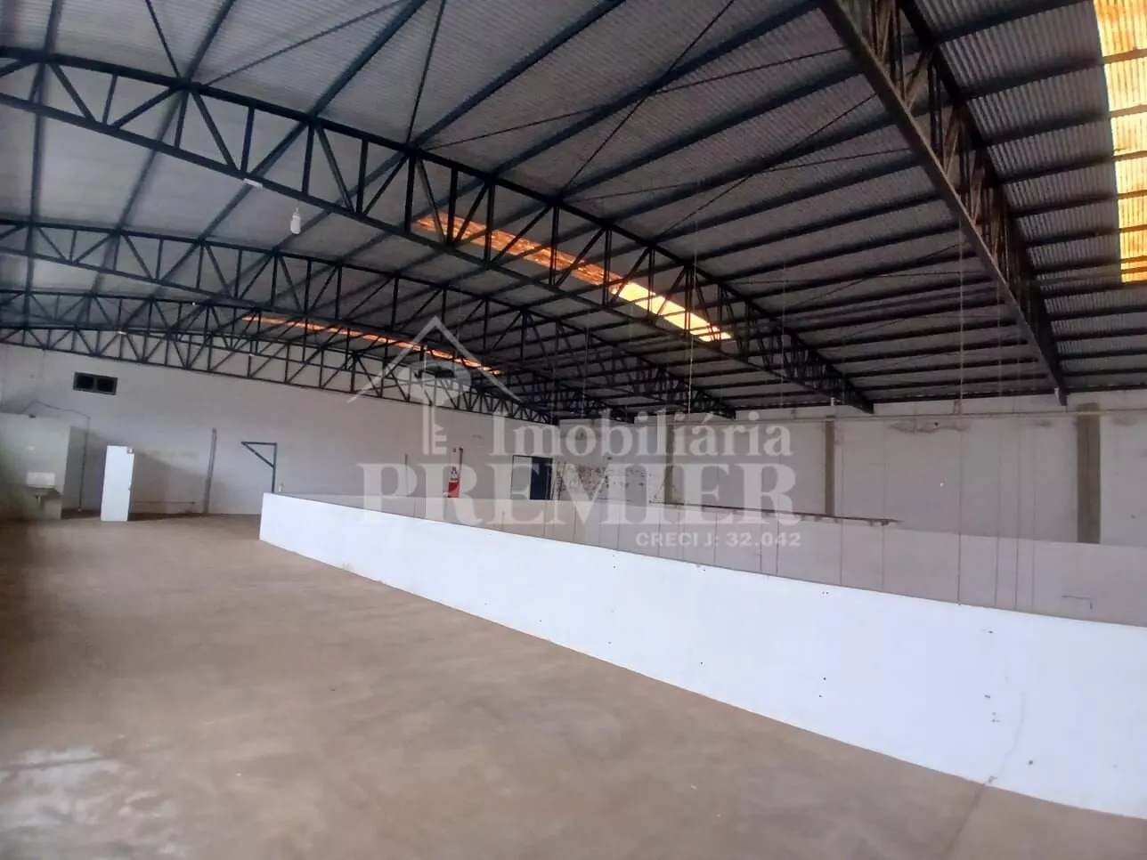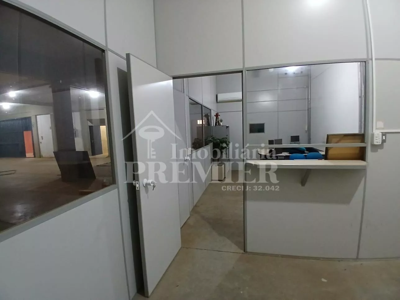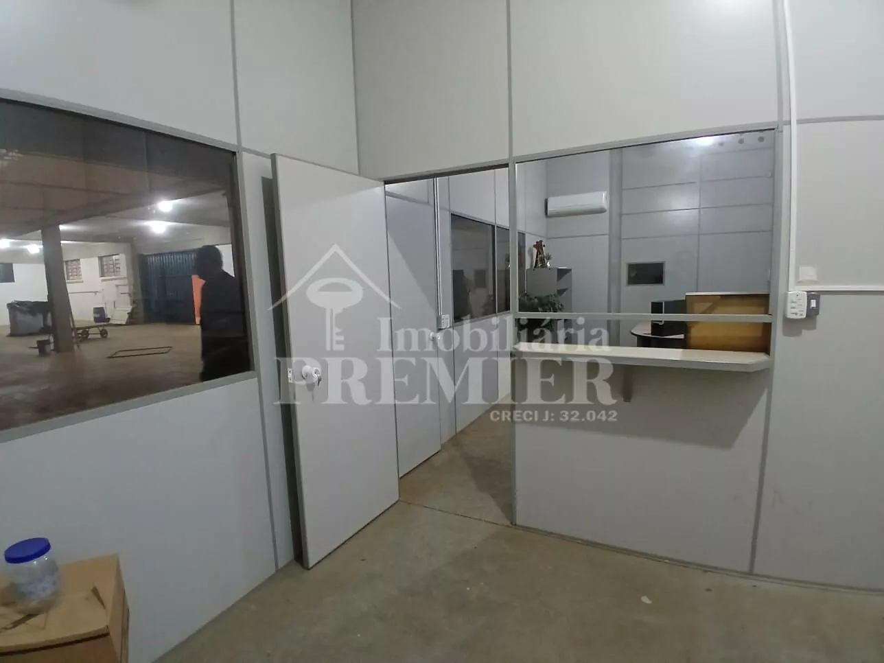- Piso térreo: 01 salão com vão livre de 1.600 mts aproximadamente, com 01 cozinha com pia, 03 banheiros, sendo 02 coletivos, tipo vestiário masc e fem, 01 para cadeirante, 03 salas de escritório com janelas de vidro e ar condicionado + 01 salão grande de 300 mts2 aproximadamente, com 03 portas basculantes e 01 doca com plataforma para carga e descarga.