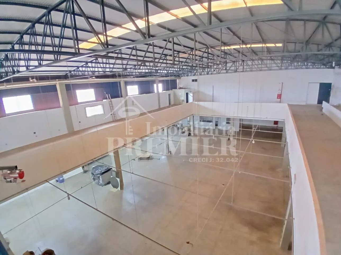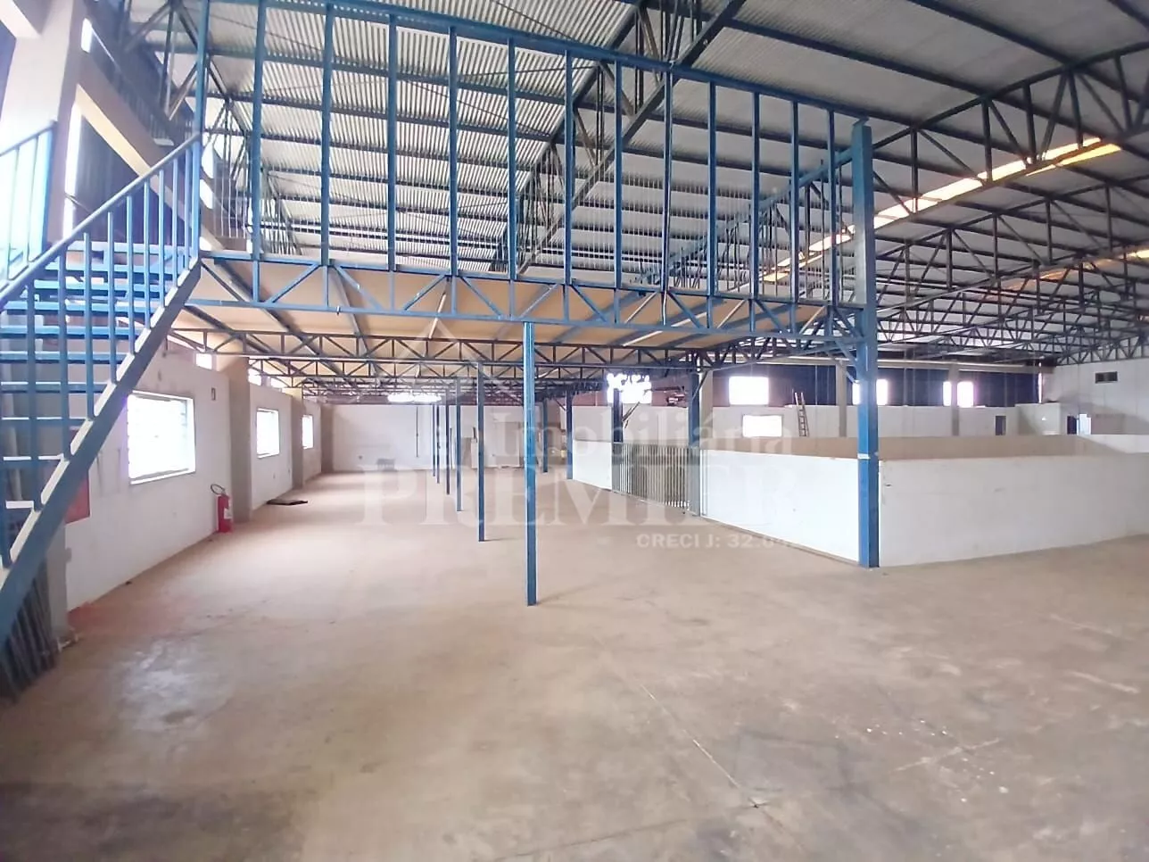 - Piso superior 02 salas para estoque, 02 banheiros masc e fem e salão com vão livre no meio.