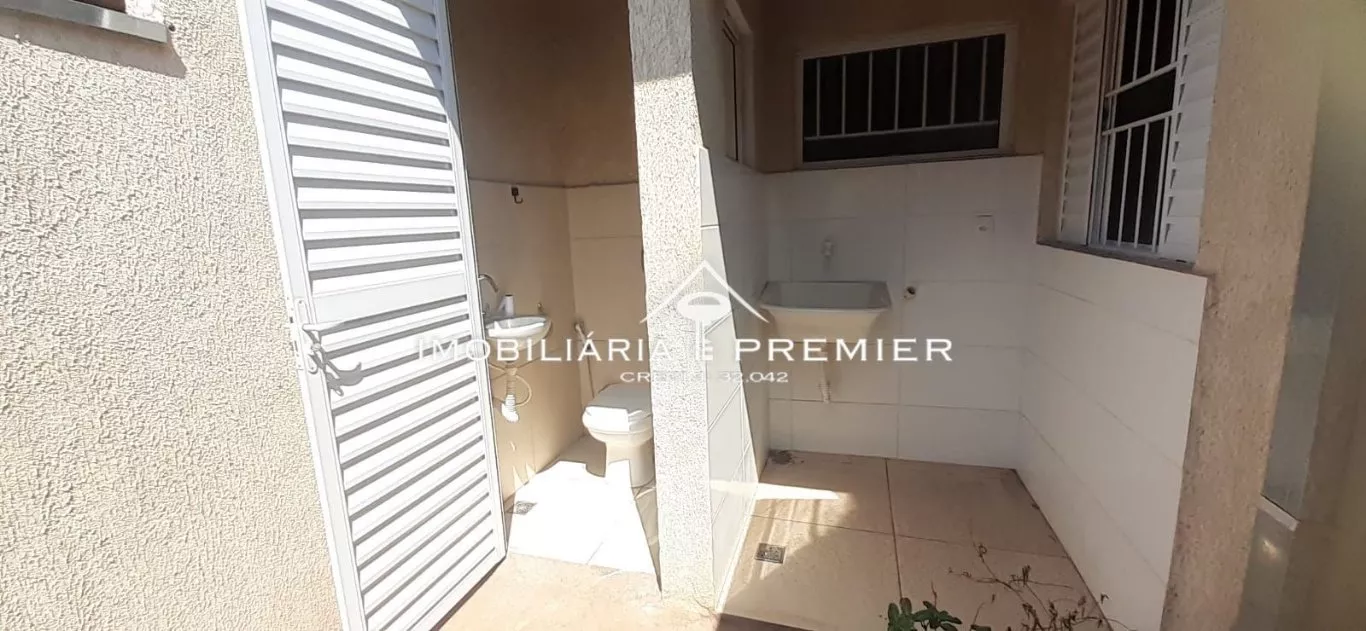 - Área externa com banheiro, tanque coberto e área de sol