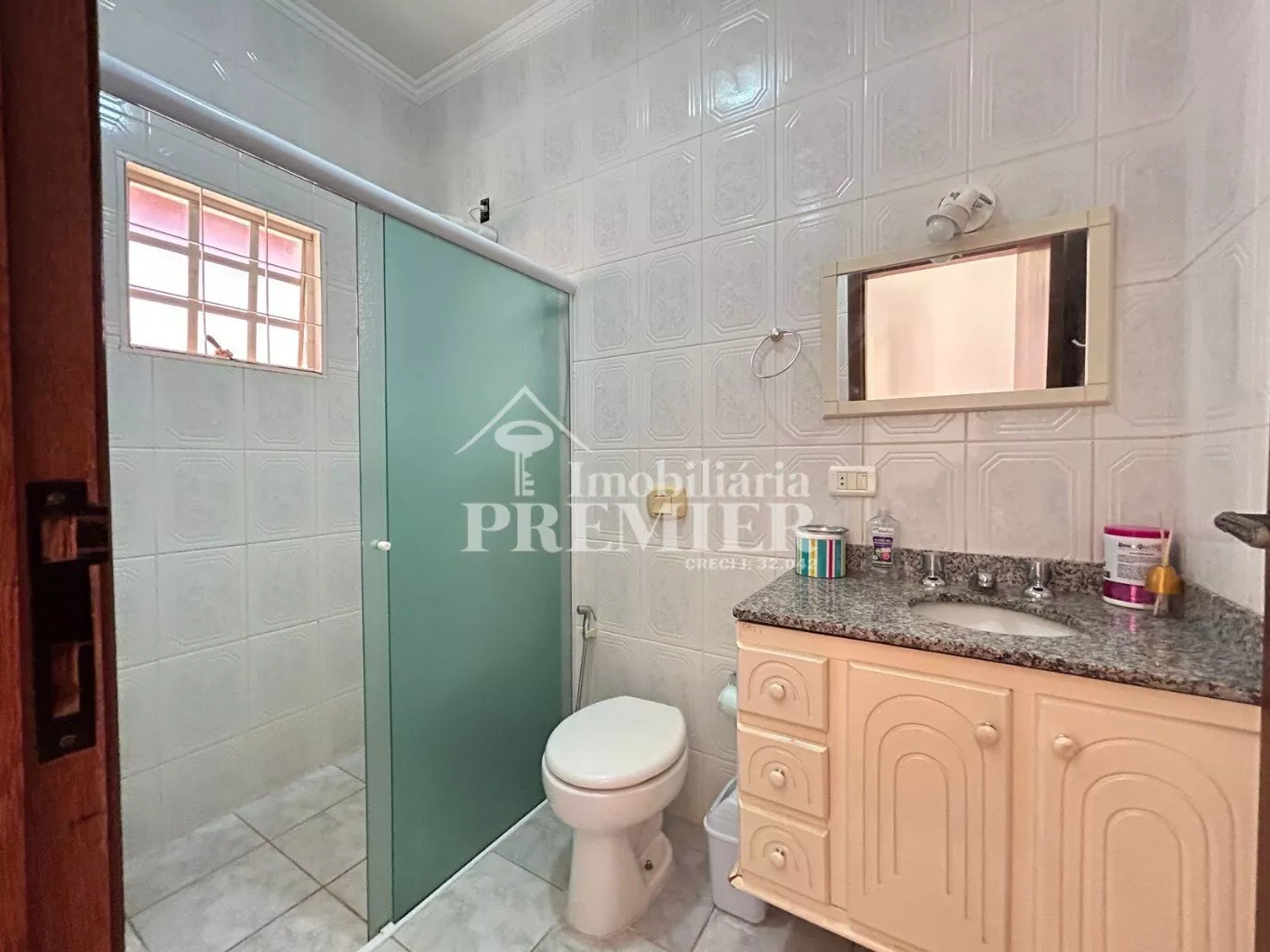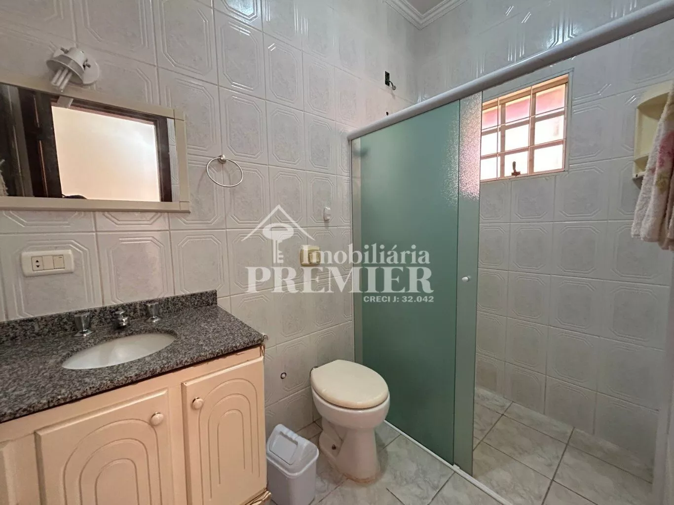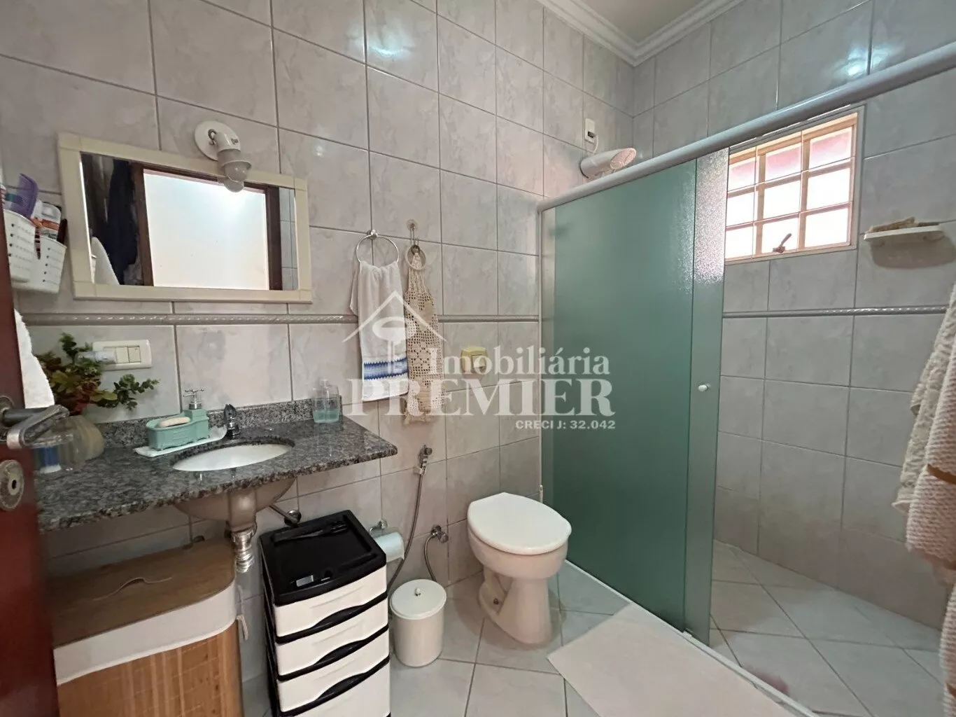 Os três banheiros desta casa são completos, com gabinetes e box em vidro temperado, proporcionando um ambiente elegante e funcional.