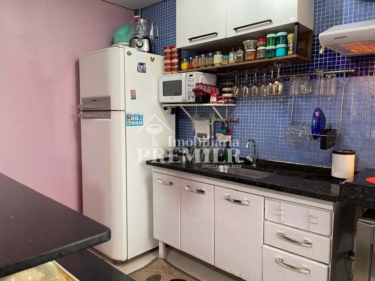 - 01 Cozinha tipo americana com balcão, pia com gabinete;
