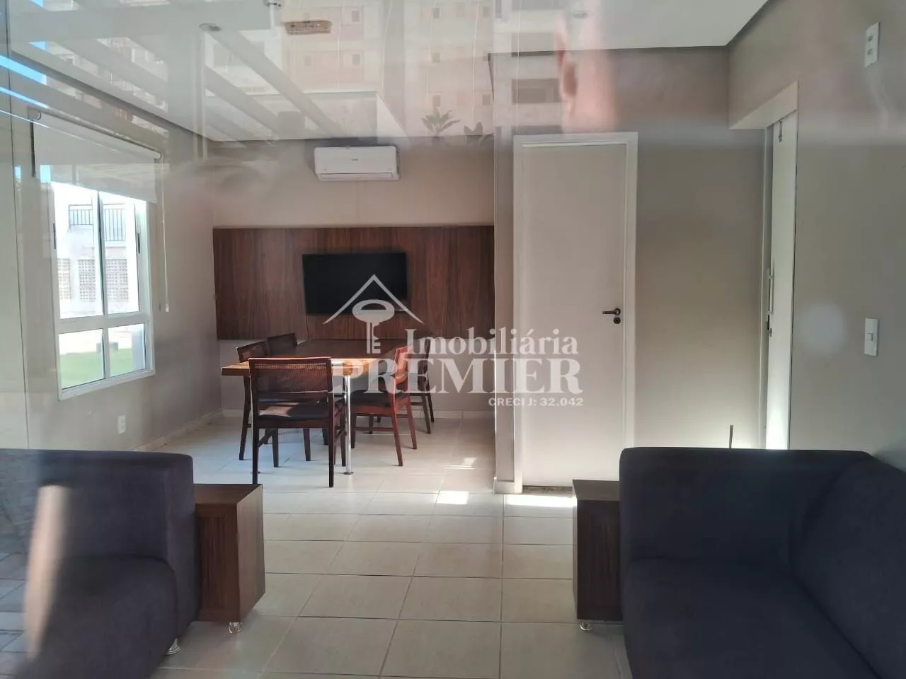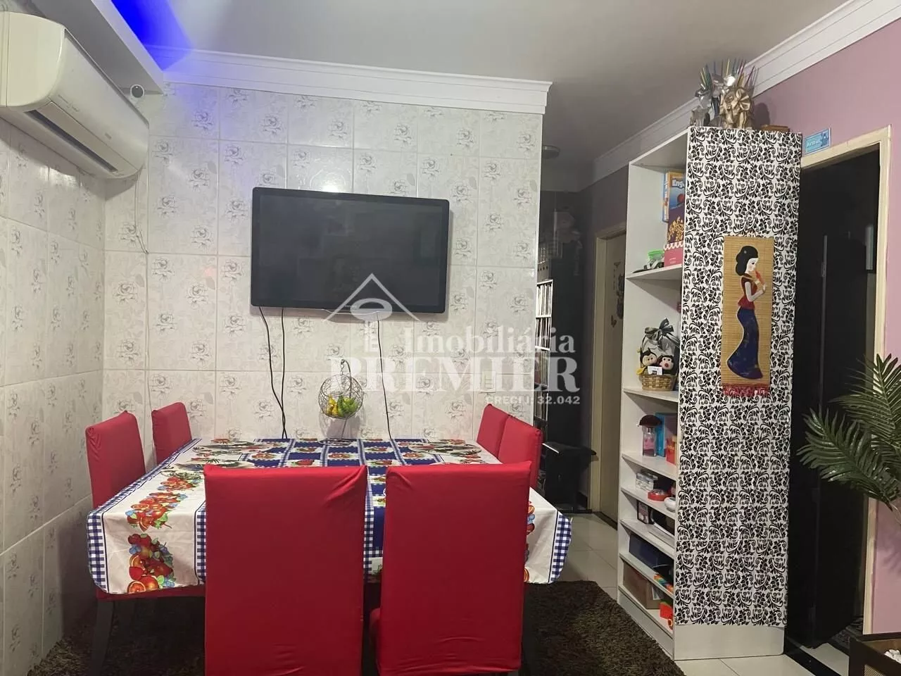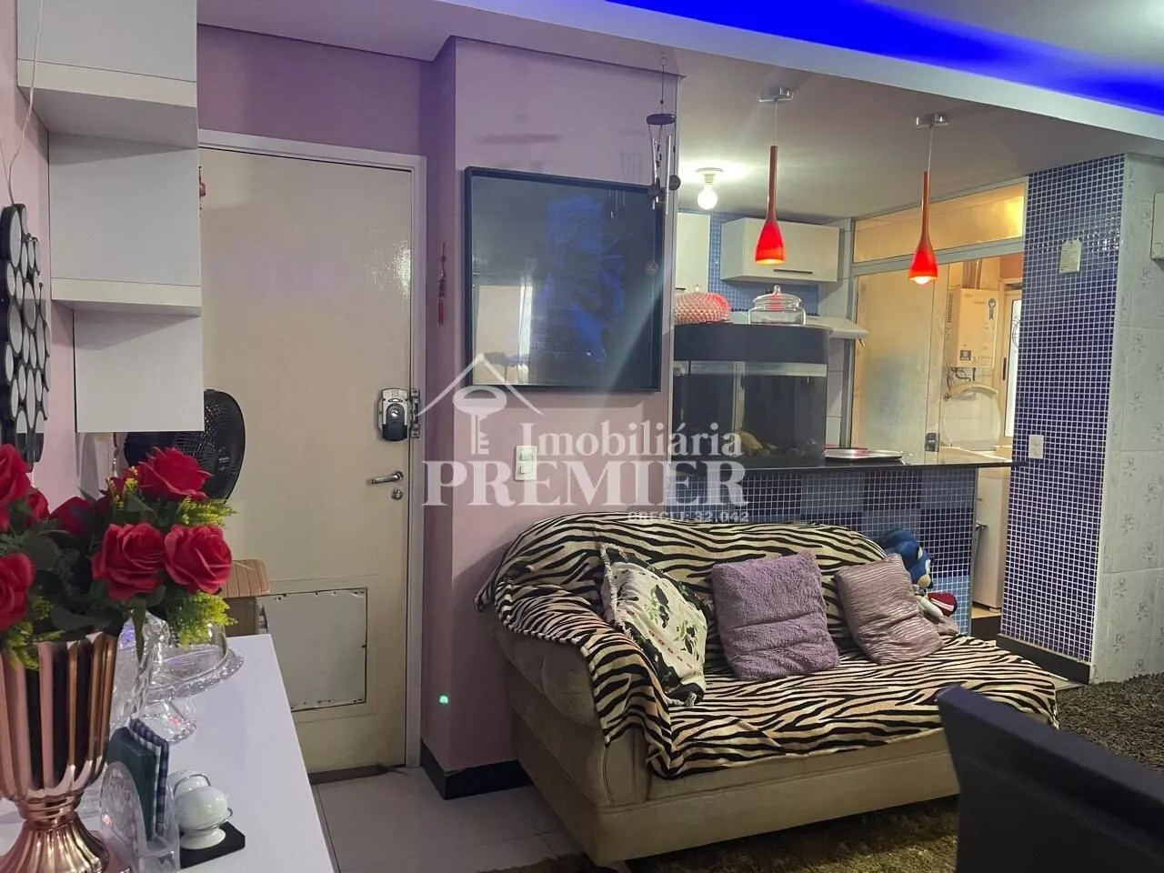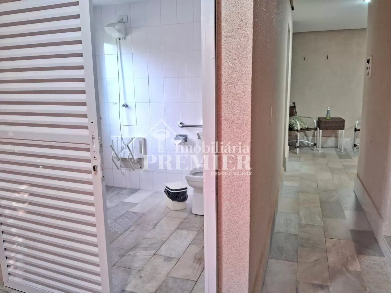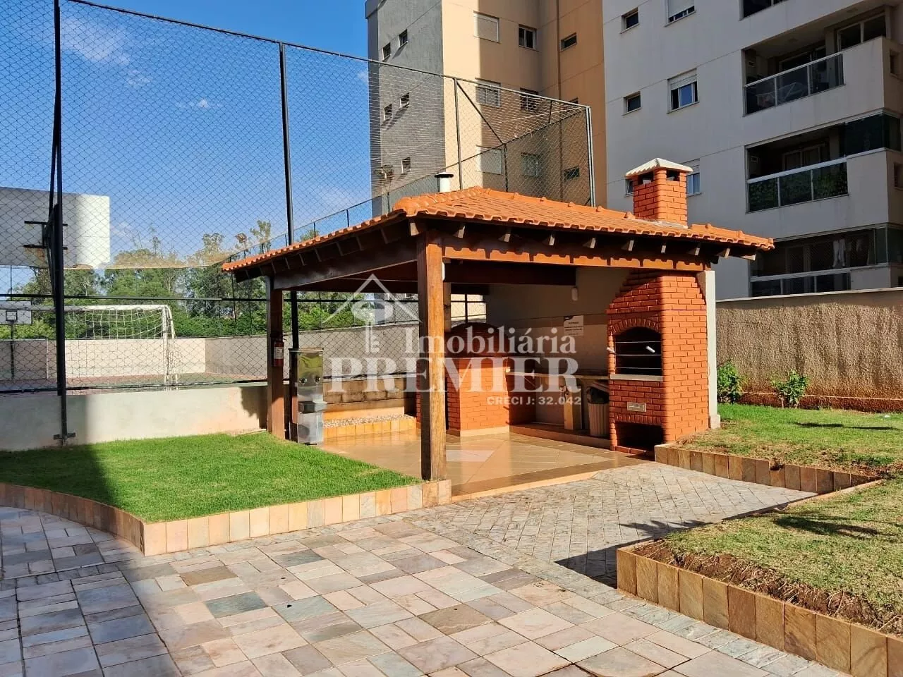 - 01 Sala com porta para sacada, com churrasqueira, pia e toldo;