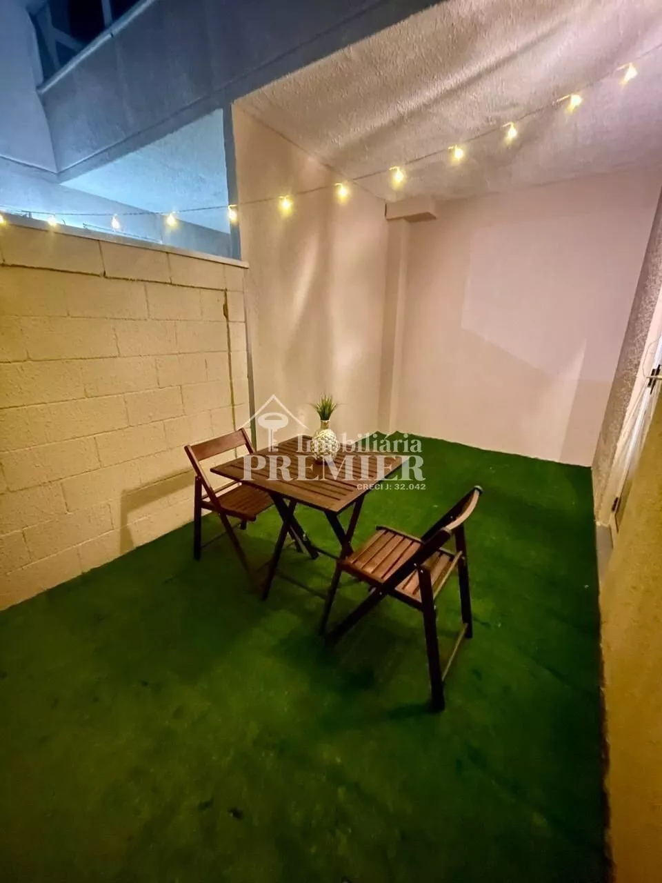 - Térreo com varanda e grama sintética.
