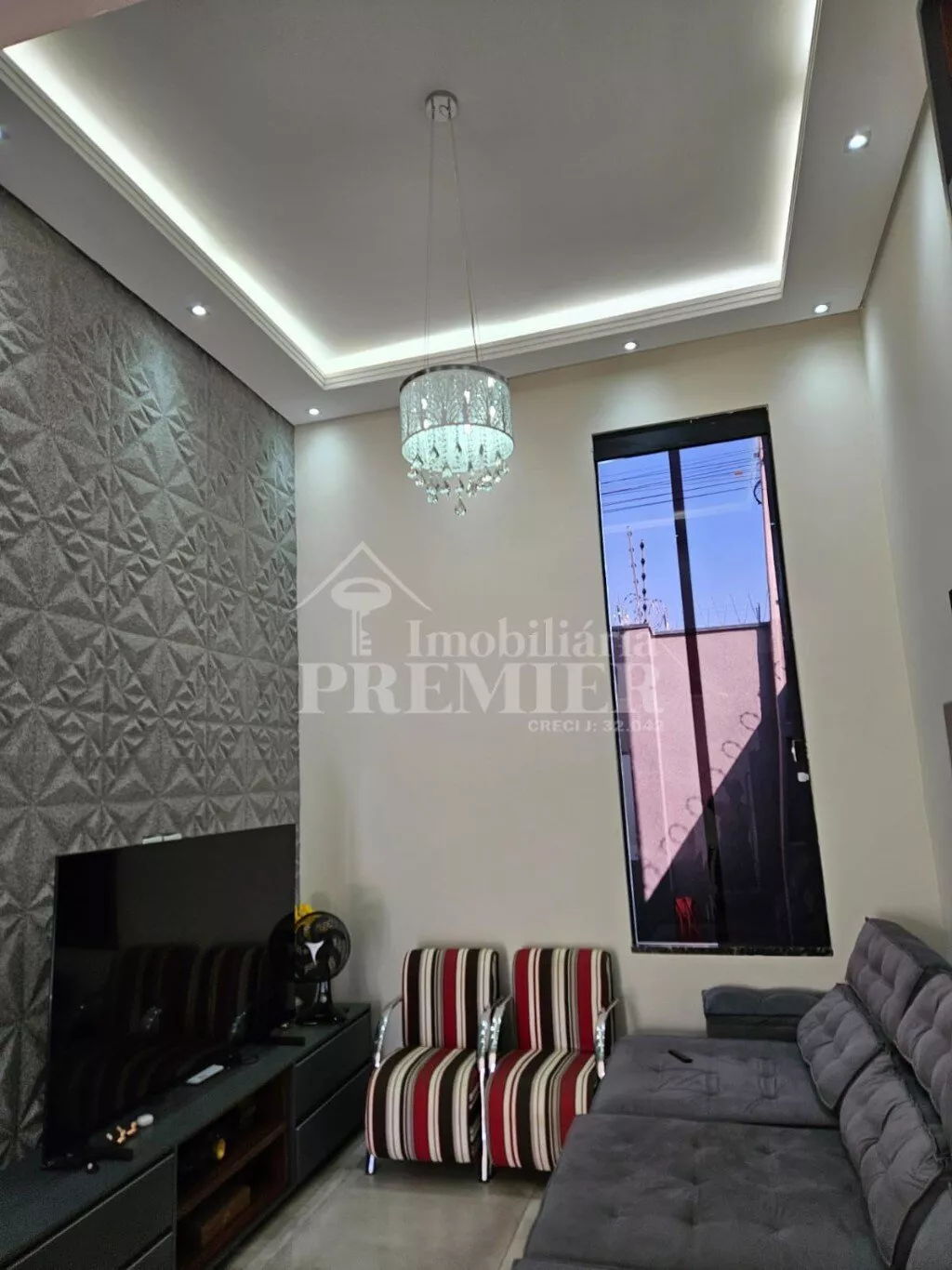 •Sala com pé direito alto, proporcionando luminosidade e amplitude