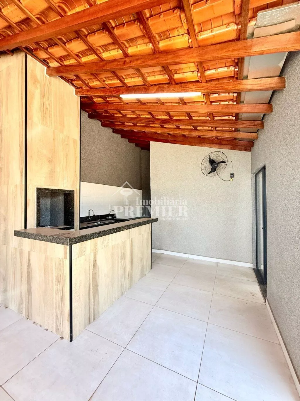 ✅ Churrasqueira e área gourmet com madeira à vista envernizada