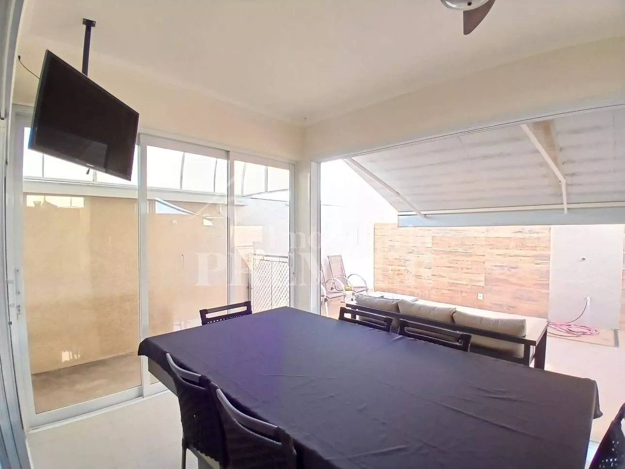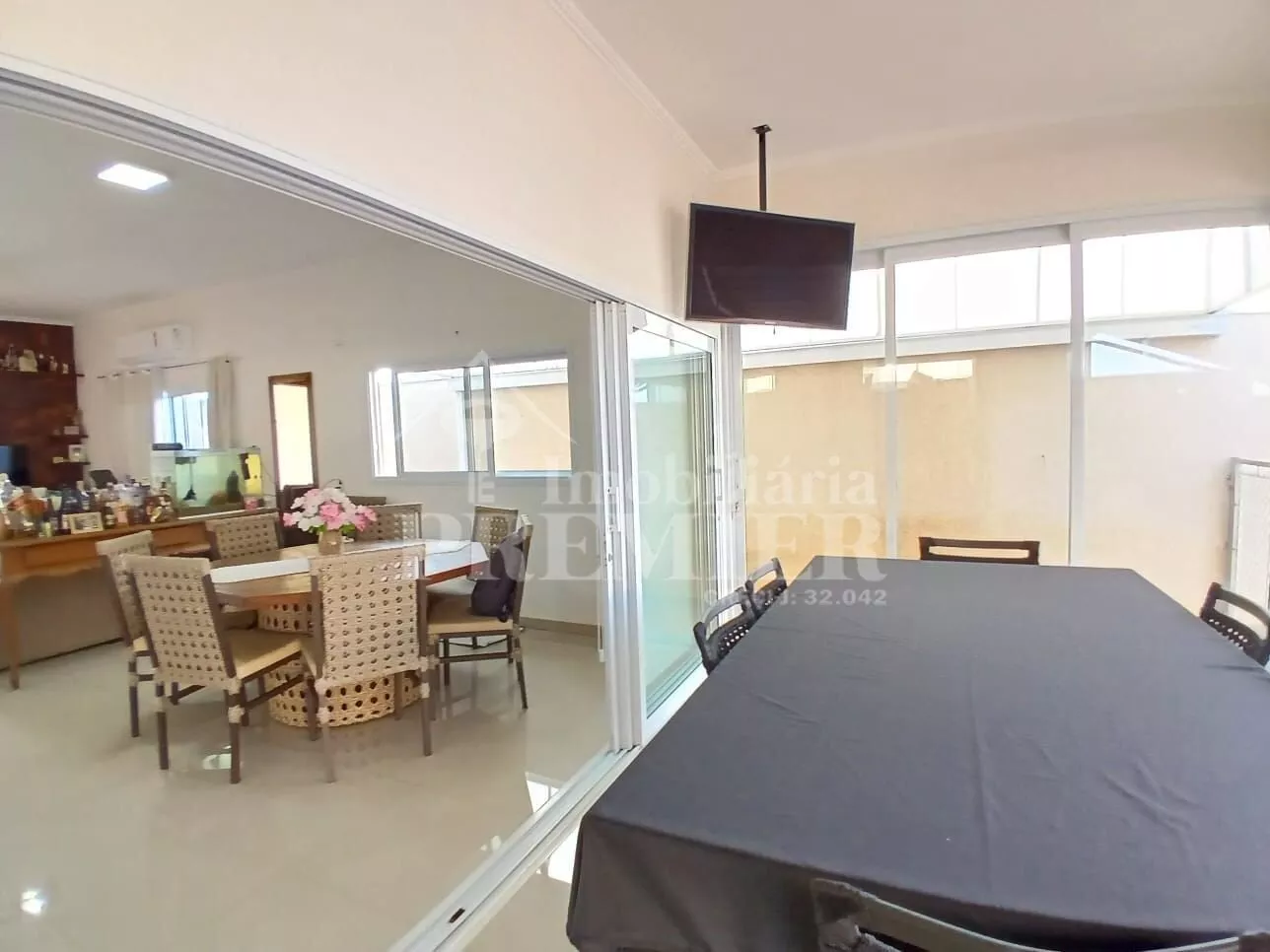 - 01 Sala ampla para 02 ambientes tipo tv e jantar com portas de vidro para a área gourmet
