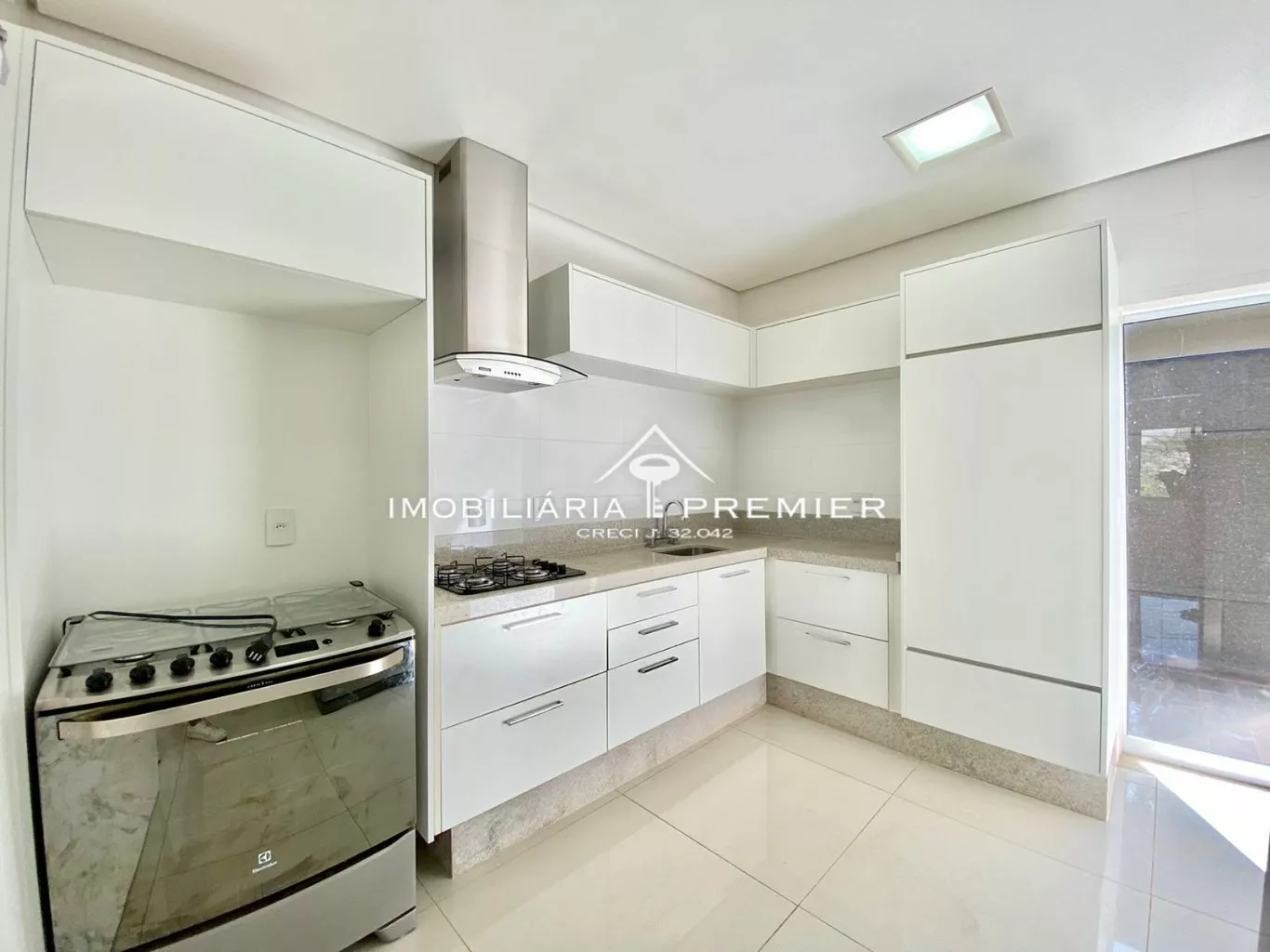 - 1 cozinha com armário planejado, cooktop e coifa;