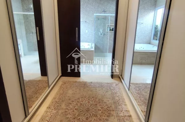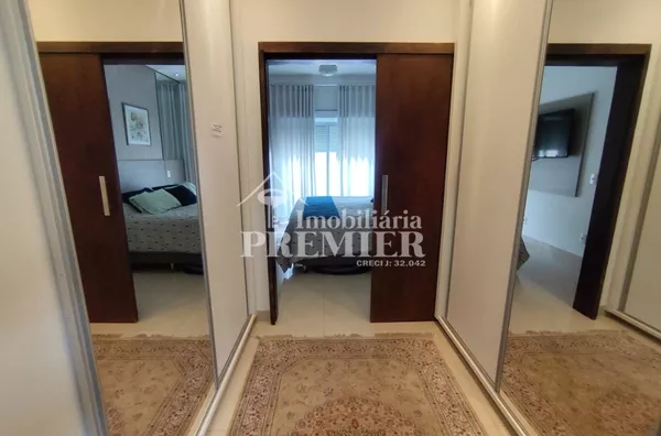 - 03 Dormitórios, sendo 01 suíte master com hidromassagem, closed e porta balcão automatizados, para área de sol, todos com ármários, ar condicionado, banheiro com box vidro e pia com gabinete, cortinas e janelas automatizadas;