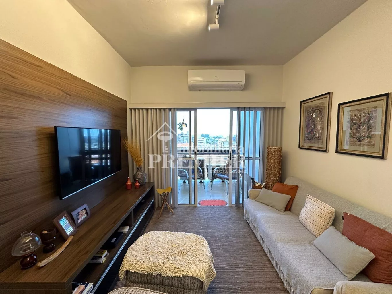 Sala para 2 ambientes com sacada gourmet, linda vista e ar-condicionado