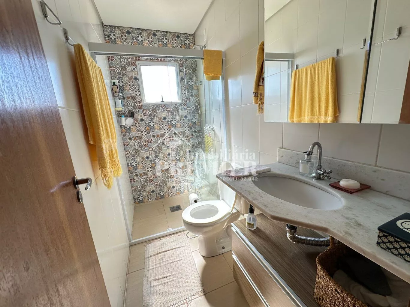 2 banheiros com gabinete, box blindex e aquecimento solar nos chuveiros